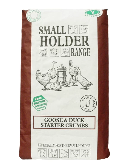 Allen and Page Goose and Duck Starter Crumbs are specially formulated to encourage natural growth rates from hatching. Designed with added vitamins and minerals for a complete nutritionally balanced diet. Available in 20kg.