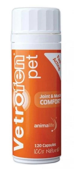 Animalife Vetrofen Pet 120 Capsules is a carefully formulated supplement for dogs and cats. Animalife Vetrofen Pets contains a completely natural antioxidant blend which targets comfort and recovery. Vetrofen Pets is particularly effective for supporting dogs and cats with the natural ageing process and recovery during everyday life. Vetrofen Pet is safe to use all dogs and cats and does not contain NSAIDs or Devil’s Claw.