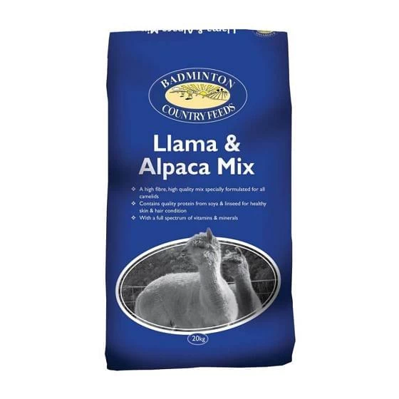 Badminton Llama & Alpaca Mix 20kg is a high fibre, high quality coarse mix specially formulated for all camelids whose energy and nutrient requirements are not being met by forage alone. 20kg.