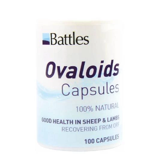 Battles Ovaloids Capsules for Sheep is a natural way of assisting good health in sheep recovering from orf. Specially designed to provide good health to sheep and lambs recovering from orf and may have certain feeding difficulties. These are 100% natural capsules and come in packs of 100.