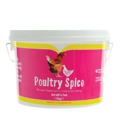 Battles Poultry Spice is a mineral supplement to give to poultry to improve all round condition and performance. The aromatic blend of highly palatable spices will encourage them to eat their ration and so help keep them strong and healthy. The high mineral content will promote good egg shell quality. Invaluable to help birds get over the moult. Will help to keep condition on during cold weather. Easy to use just add to their daily ration.