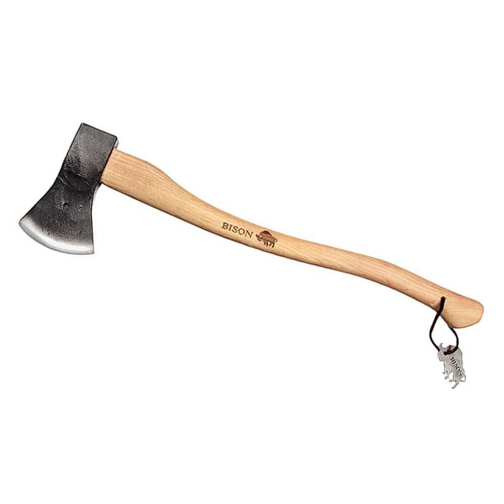 The Bison Universal Axe 700mm is a 1.25kg all-rounder axe designed for a variety of operations. The Universal Axe combines power and control, for easy felling, thinning and even light splitting tasks. The Bison Axe has been manufactured with a medium thickness blade and a wide cutting edge for precision, and a solid, resilient hickory wood handle with excellent vibration absorption, ergonomically shaped for user comfort and finished with natural varnish.