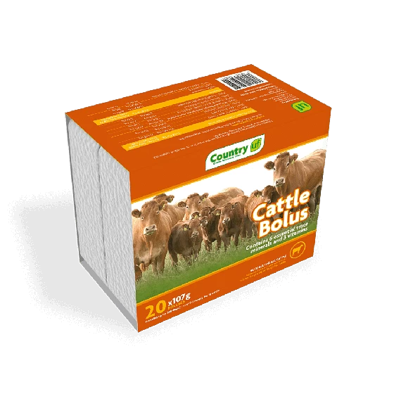 The Country UF Cattle Bolus 20 Pack provides a sustained release of vital trace elements and vitamins you cattle needs from a unique, single point erosion technology bolus. The pack provides approximately 240 days’ worth of supplementation, heling farmers to balance trace elements and vitamins in their herd at different stages of production to help maximise profitability.
