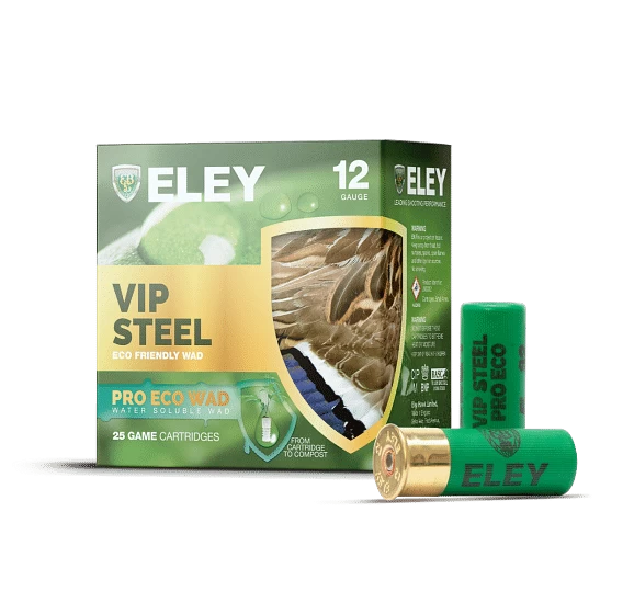 The Eley Hawk VIP Steel Pro Eco Wad Shotgun Cartridges are a game cartridge that have changed the game for lead-free loads. The first of their kind from a UK manufacturer, the VIP Steel Pro Eco cartridges allow wildfowlers, game, and clay shooters alike to be able to shoot steel shot cartridges safely with a non-plastic was that is harmless to the environment.