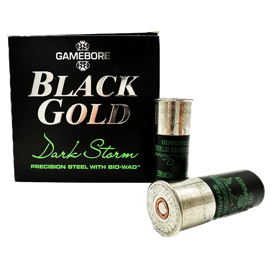 The Gamebore Black Gold Dark Storm Precision Steel 12Ga 32g Bio Wad Shotgun Cartridges are a game cartridge building on the unrivalled performance demonstrated by their original Dark Storm cartridges. Introducing their 2nd generation of Bio-Wad technology for a full cup wad that is 100% environmentally safe. Using the same cutting edge Quad Seal technology, with its incredible gas seal, allowing Gamebore’s exclusively blended powders to burn cleanly – for maximum pressure. The cartridges feature a new, specifically designed cup section perfectly suited for steel shot. Manufactured to the absolute highest standards to ensure absolute consistency of size and shape, Gamebore’s steel shot is a non-toxic alternative to lead shot without any compromise in performance.