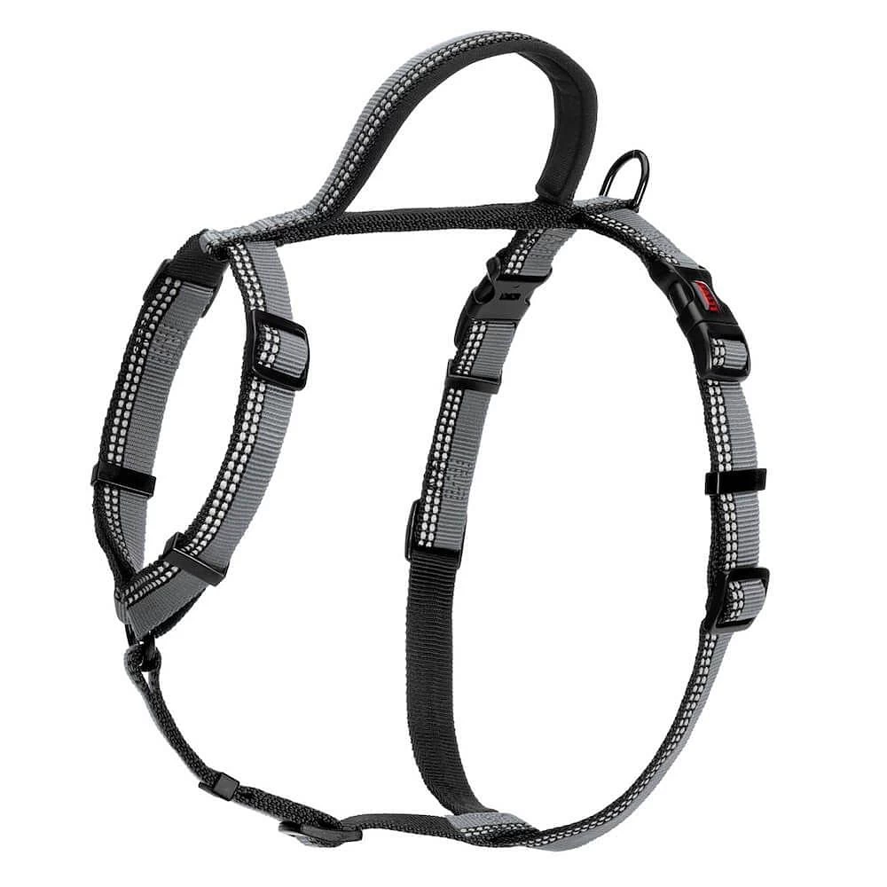 The Halti Dog Walking Harness combines both style, and practicality making it the perfect harness for everyday walking. The Halti Harness features five points of adjustment to ensure a secure, comfortable fit for any size and shape of dog and two lead clip rings on the dogs chest and back to provide essential points of control for the more energetic dog. The Halti dog walking harness brings together style and functionality, made from smart two-tone webbing, with additional 3M reflective weave for extra visibility in low light conditions, ensuring safety as well as comfort for both the dog and owner. Available in X-Small (35-48cm), Small (43-60cm), Medium (56-76cm) and Large (68-100cm) sizes.
