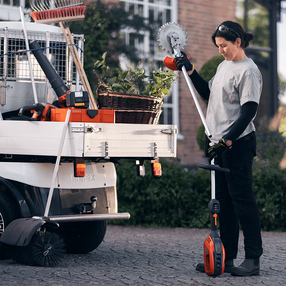 The Husqvarna 525iLK Battery Combi-Machine is a robust, high-performance professional-grade combi machine. It is well balanced and lightweight, whilst delivering power equivelent to a 25cc petrol machine. This cordless combi machine is designed for full-time, professional use, delivering the performance you need with a brushless E-Torq motor and grass trimmer attachment with 42cm cutting diameter. The wide range of Husqvarna combi attachments makes it a highly versatile tool for cutting grass, pruning, hedge trimming, edging, or cleaning. Equipped with integrated connectivity for easy connection to digital services.