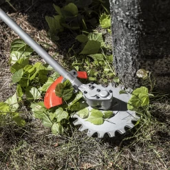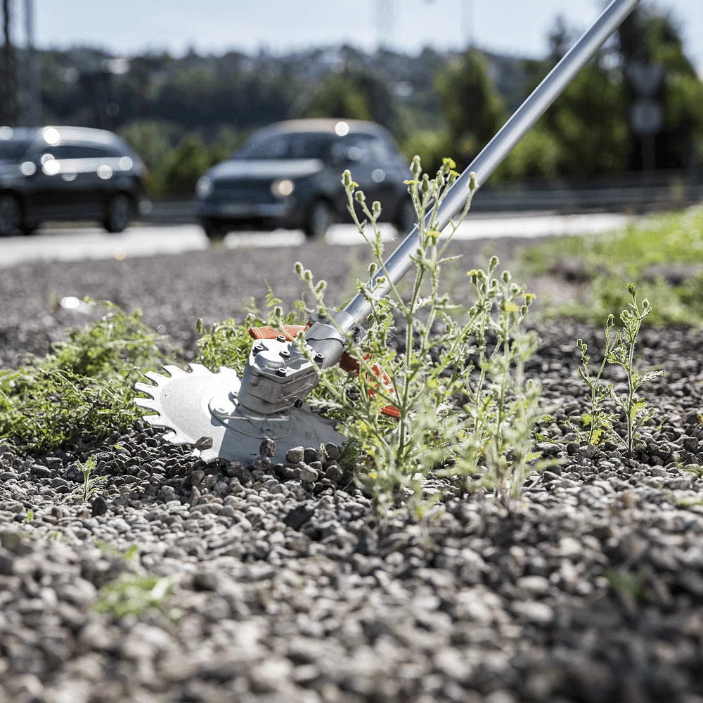 The Husqvarna RA-V Weed Scissor Reciprocator Gear Attachment is an attachment developed by the Husqvarna team to be compatible with the Husqvarna 524/525 series brushcutters/trimmers. Thoughtfully designed for safer and more efficient weed control and grass edging along pavements and on gravel paths, where an ordinary trimmer would potentially be a safety concern due to the potential risk of rocks and debris being thrown. The robust, durable reciprocating blades work back and forth to cut the weeds like a scissor, similar to a hedge trimmer.