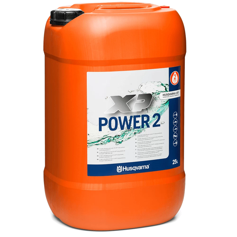 The Husqvarna XP® Power 2 is an advanced 2-stroke alkylate fuel mixed with 2% Husqvarna XP® 2-stroke oil, specifically formulated for Husqvarna products. Exceptional cleanliness and lubricity ensures durability for your Husqvarna machines, even under the toughest working conditions. The Husqvarna Alkylate fuel formula, mixed with fully synthetic, biodegradable oil, results in less harmful exhaust emissions than regular fuels – contributing to a healthier working environment and improved productivity. The Husqvarna XP® Power 2 features VEF (Verified Engine Formula), a Husqvarna verification program that secures long term durability of your Husqvarna machine engines.