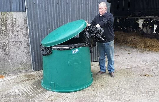 The JFC Agri Tidywrap Recycling Bin is an ideal way to store waste plastic bale wrap, ensuring it stays clean and dry. When used effectively the bin can significantly reduce collection costs, as the overall weight is much less than if the plastic were wet and contaminated.