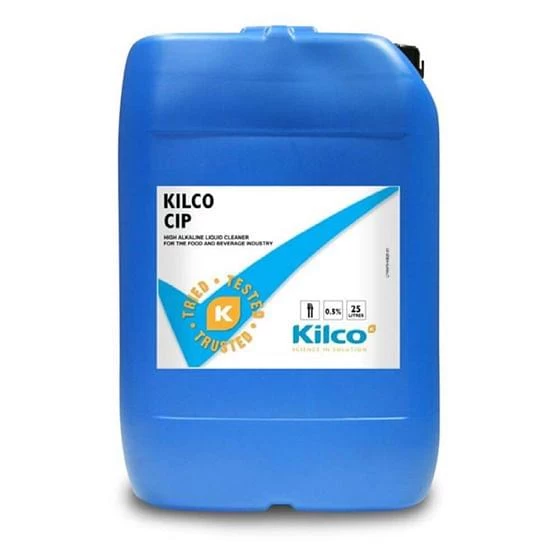 The Kilco Cip 25L is a highly alkaline, low foam blended detergent for the food and beverage industry. Specifically formulated for CIP and other spray washing applications in the Food, Dairy, Brewing and Beverage Industries.