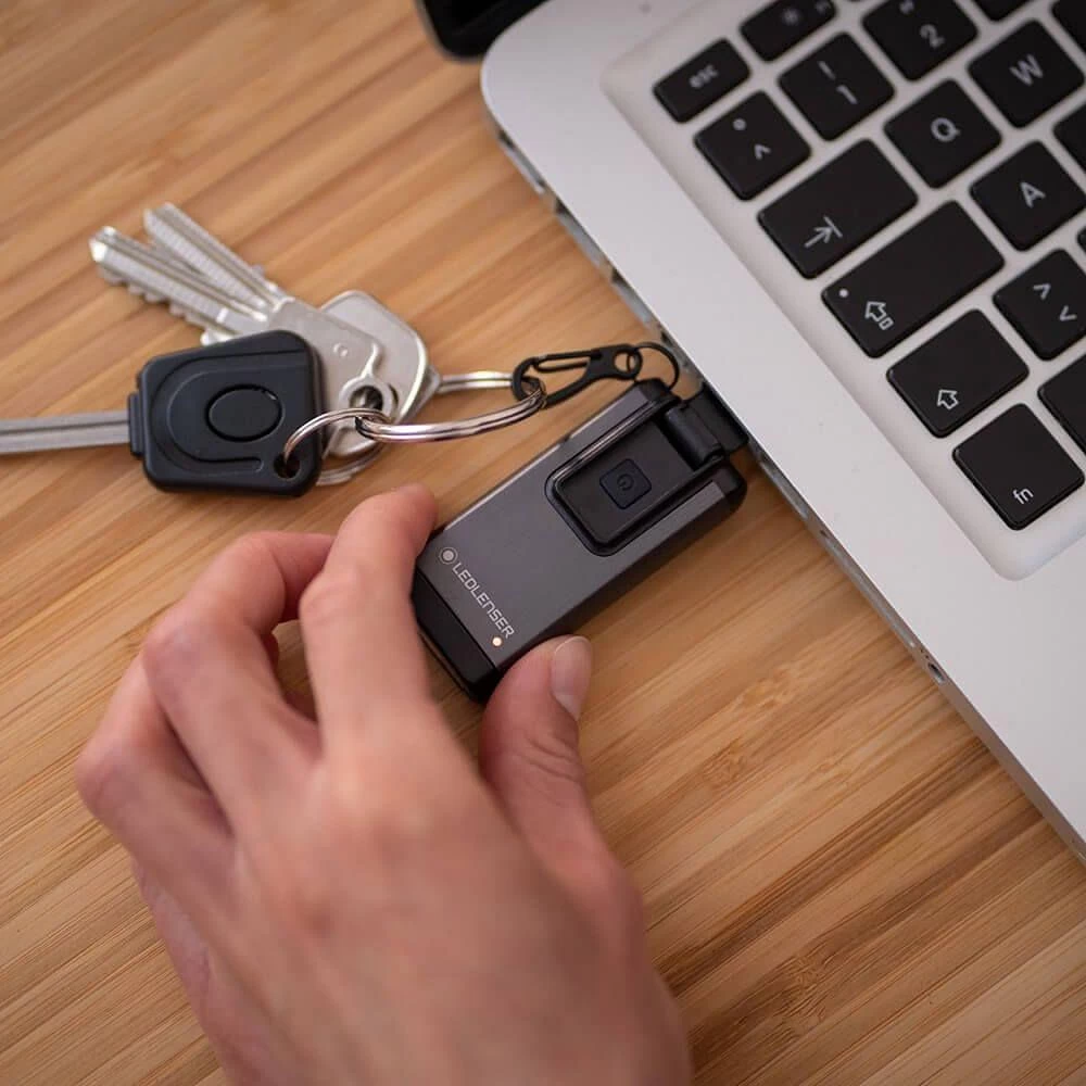 - Powerful, compact keychain light with up to 400 lumens of light output