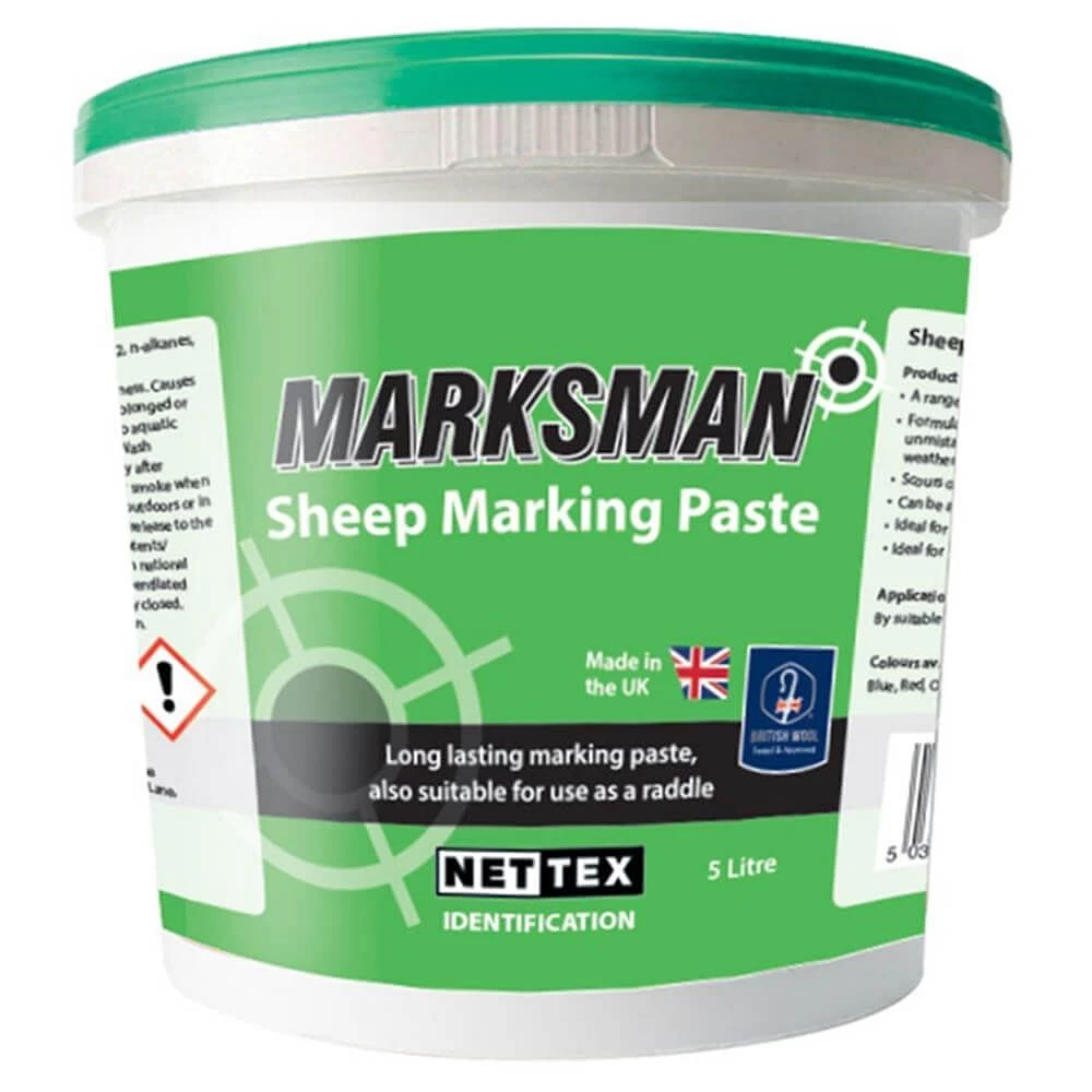 The Nettex Flockmaster Marksman Marking Paste 5 litre can be applied to wet or dry fleeces. The highly visible colour will remain strong and easily distinguishable for unmistakable identification. Also available in 2.5l.