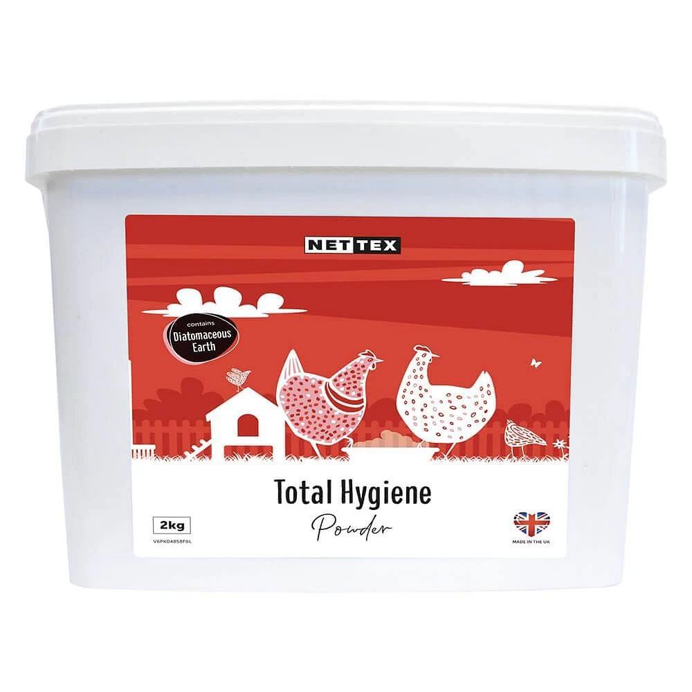The Nettex Total Hygiene Powder is a natural mite control powder that can be applied directly onto all types of birds and poultry. The killing action works mechanically on the surface of the mites, breaking down their waxy protective coating, which causes them to dehydrate and die. Red mites, depluming mites, northern, cyst and spider mites, plus other insects such as cockroaches, ants, silverfish, termites and fleas, and lice and ticks commonly associated with domestic pets are all susceptible.