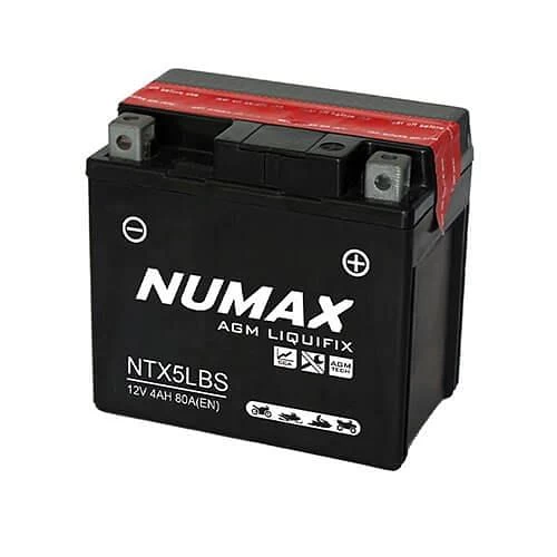 The YTX5L-BS Numax NTX5L-BS AGM Motorcycle battery is engineered with the latest advanced technology, ensuring optimal performance in every ride. With Numax AGM (Absorbent Glass Mat) Motorcycle batteries, experience exceptional starting power that surpasses traditional batteries by up to 30%, giving you the confidence to ignite your motorcycle with ease.