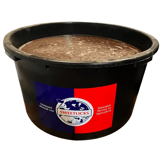 The Owens Forage Booster Sweetlick Molassed Protein Bucket can be fed to cattle at grass, or offered with silage or hay. Allowing your cattle to get the most out of all forages, preserved or fresh. Recommended dosage is 200-300g per head, per day. The Forage Booster is a highly palatable mixture, encouraging intake from even the fussiest eaters.