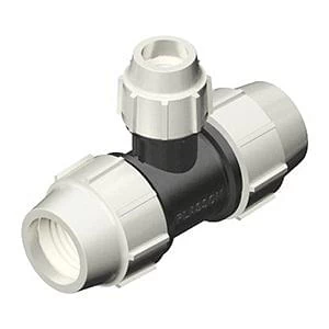 The Plasson 32mm to 25mm Reducing 90 Degree Tee (7340) is a high quality fitting for PE pipes, developed and manufactured by Plasson Flow Solutions.