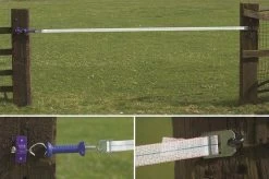 The Rutland Electro-Tape Gate 5m helps to simplify the construction of electric gate openings on electric fencing. It includes; gate break insulator, handle and high visibility 40 mm wide tape. It also features a buckle to make it easy to adjust the length up to a maximum of 5 m.