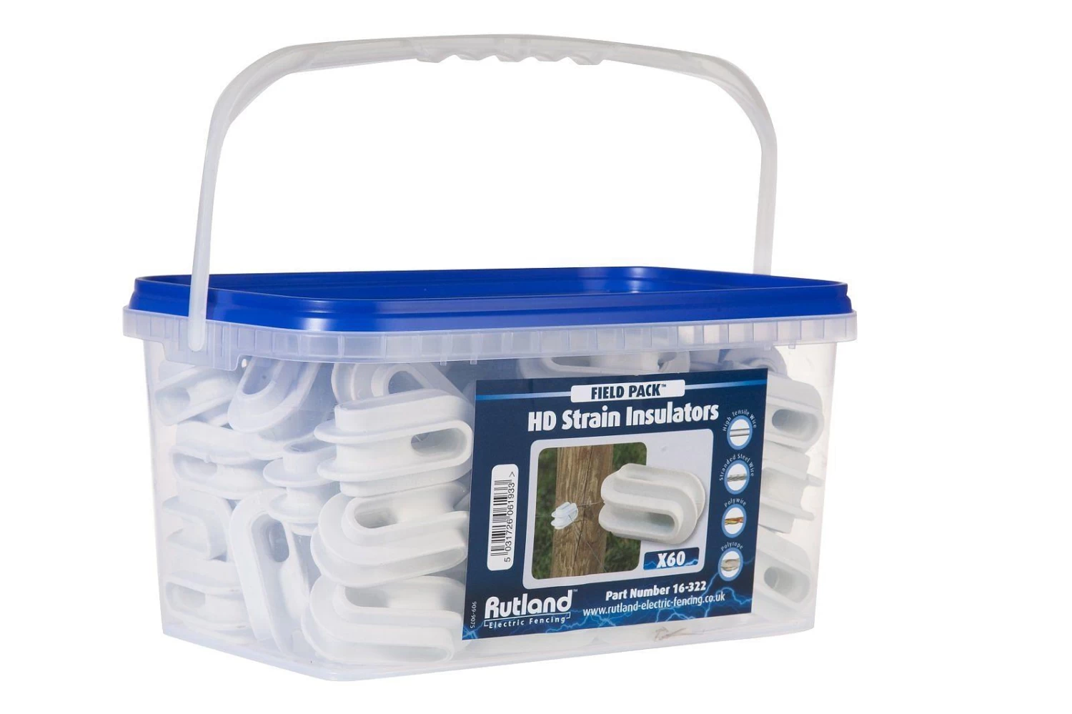 The Rutland Heavy Duty Strain Insulator is for use at corner posts in permanent electric fencing. They are glassacetal and are available in a 10 pack or in a larger pack of 60.