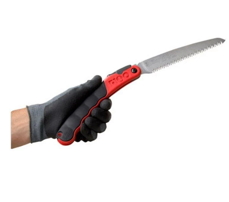 The Silky F180 Saw is a lightweight and strong folding saw with 7-inch blade, ideal for a number of different tasks. This saw uses the exclusive Silky MIRAI-ME (Smooth Cutting) Technology. The precision-ground, razor sharp blade has four cutting angles along the length of the blade to give a fast, clean and smooth cutting action. The blade easily and safely locks into two different angled positions for easy cutting. The handle is built with a fiberglass polypropylene with a rubber insert to guarantee a comfortable and sure grip. With an excellent design, strength, balance and superior finish quality you can put this convenient, lightweight tool in your pocket, glove compartment or tool box. It is a perfect cost-effective all-round folding saw that is always ready for all pruning tasks and outdoor projects. Made in Japan.