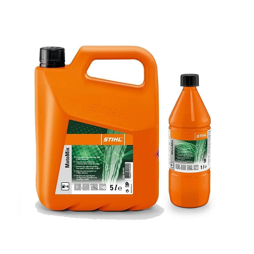 The Stihl MotoMix Fuel is an optimised 1:50 premixed fuel for all Stihl engines. This Stihl Fuel uses a patented fuel formula and Stihl HP Ultra engine oil to ensure maximum performance and offer a consistent level of protection for the internal components. The Stihl MotoMix Fuel is available in 1 litre and 5 litre.